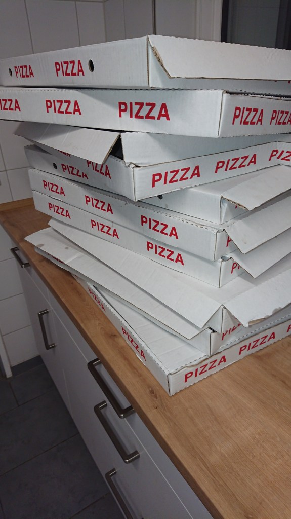 Um 18 Uhr gab es endlich Pizza. Für alle eine kurze Pause um durchzuschnaufen und für Einige eine Gelegenheit schonmal die nächsten Taktiken am Pokertisch zu besprechen. Wie erwartet hatten alle Anwesenden großen Hunger mitgebracht und natürlich wurde alles alle.