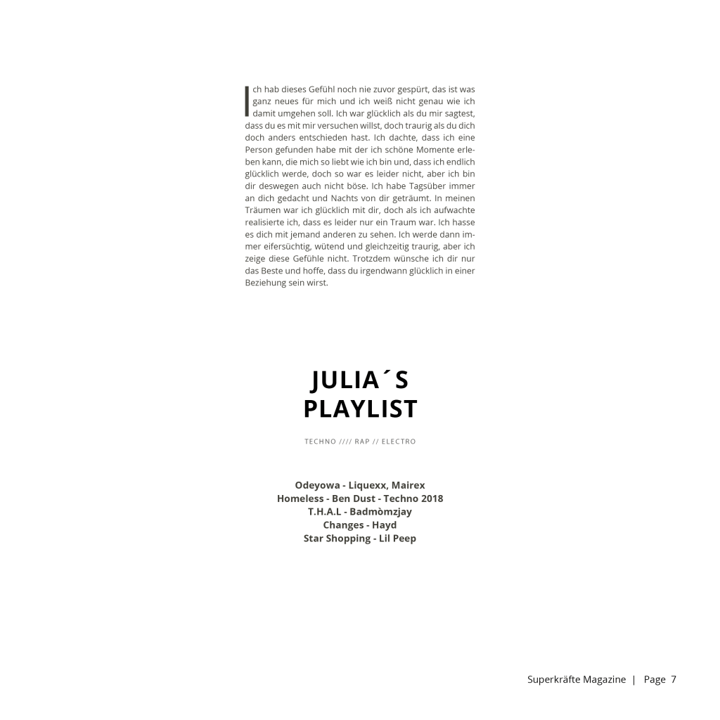 Schreib uns an, egal wie, Instagram oder Whatzapp (Tel 0176 72762808 Gianluca) und wir können gemeinsam darüber sprechen. In diesem Magazin ist definitiv Platz für dich.