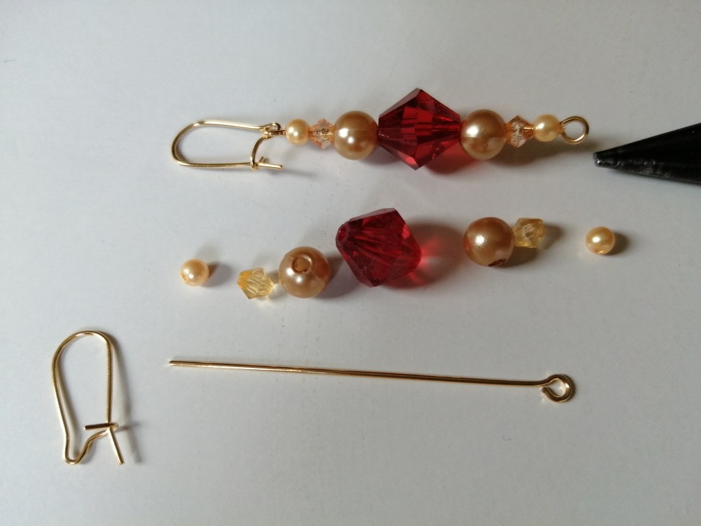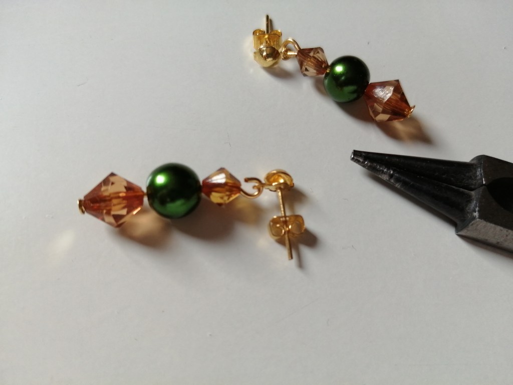 Diese edlen symmetrischen Ohrringe sind insgesamt 5 cm lang. Nochmal zur Erinnerung: Fast alle Perlen sind in verschiedenen Farben und Größen zu haben. Und da das Basteln so schnell geht, bekommst Du Material für 2 Paar Ohrringe!
