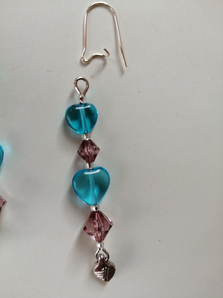 Wenn Du es eingehängt hast, biegst Du die Öse wieder zusammen- dann die Perlen auffädeln…