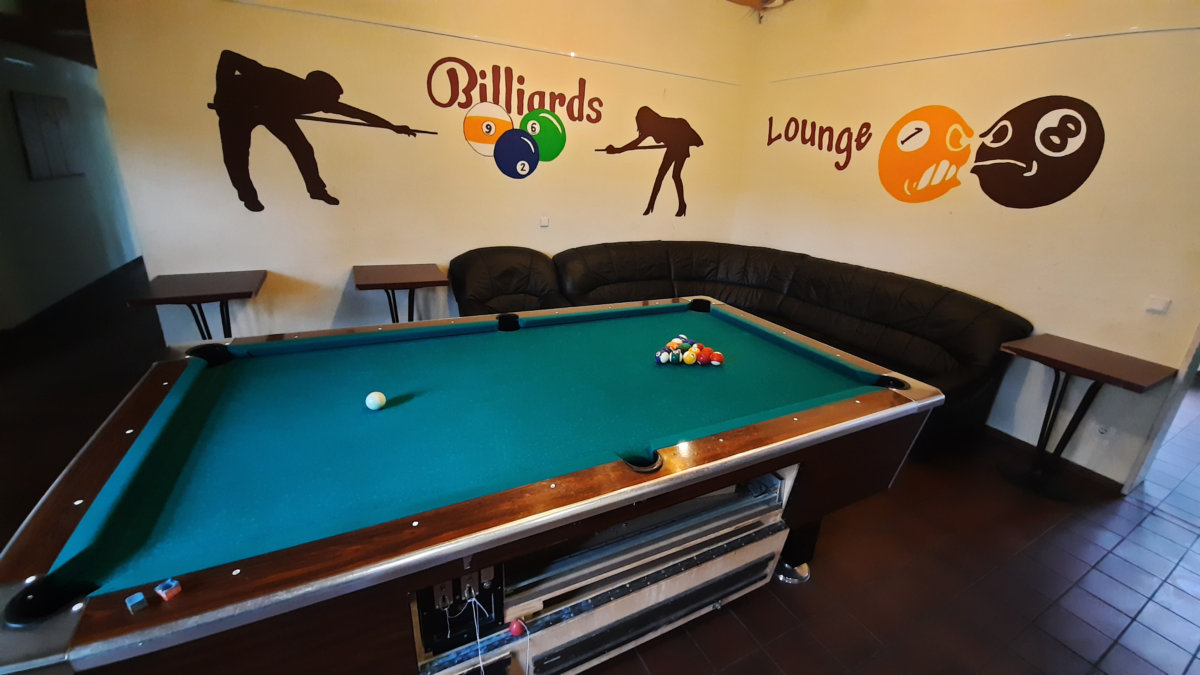 Außerdem haben wir einen Tanzsaal der Euch auch zu Verfügung steht. Desweiteren haben wir einen Billardtisch, der zu spannenden Spielen einlädt und ein Internetcafe, in welchem ihr die Laptops zum Lernen, Hausaufgaben machen oder einfach nur zum Daddeln verwenden könnt.