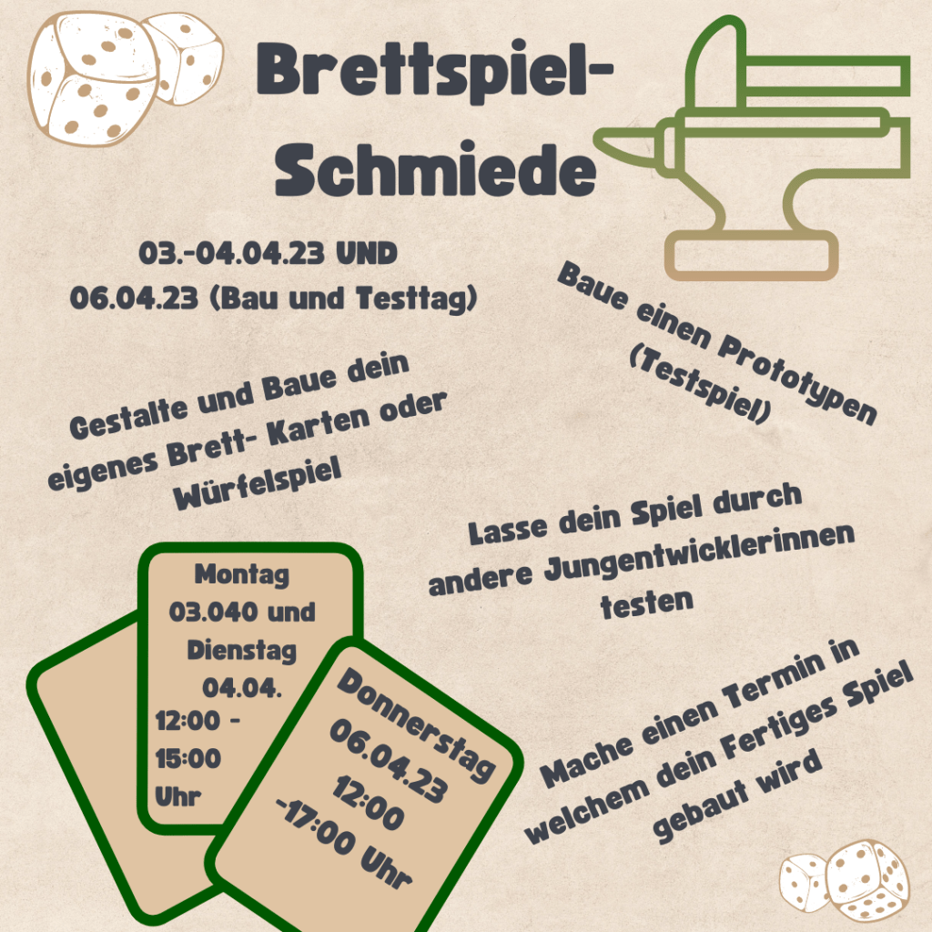 Entwickel dein eigenes Spiel. Von der Idee bis hin zu einem komplettfertigen Spiel begleiten wir dich. Soll es ein Kartenspiel sein? Oder doch lieber ein Würfelspiel, oder klassisch mit Brett und Würfeln? Alles kein Problem! Schritt für Schritt Begleiten wir dich bei Planung und Entwicklung von Regeln, Systemen und Layout für dein Spiel.
