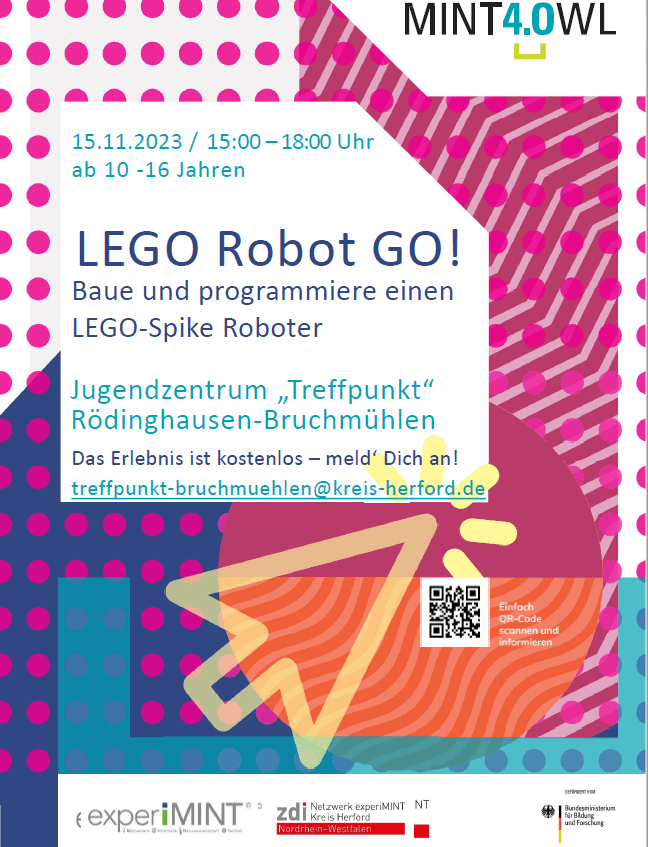 Altersempfehlung: 11-16 Jahre . Die Teilnahme ist kostenlos.Melde dich frühzeitig an, um dabei zu sein 🙂 schreibe uns eine Nachricht auf Insta, what’s app 015118949492 oder eine Mail an: treffpunkt-bruchmuehlen@kreis-herford.de